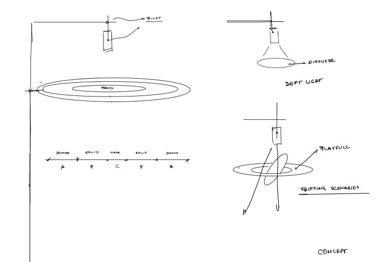 Luz y ambienteDesarrollo de conceptoEstudios de formaPruebas de luz en prototipo